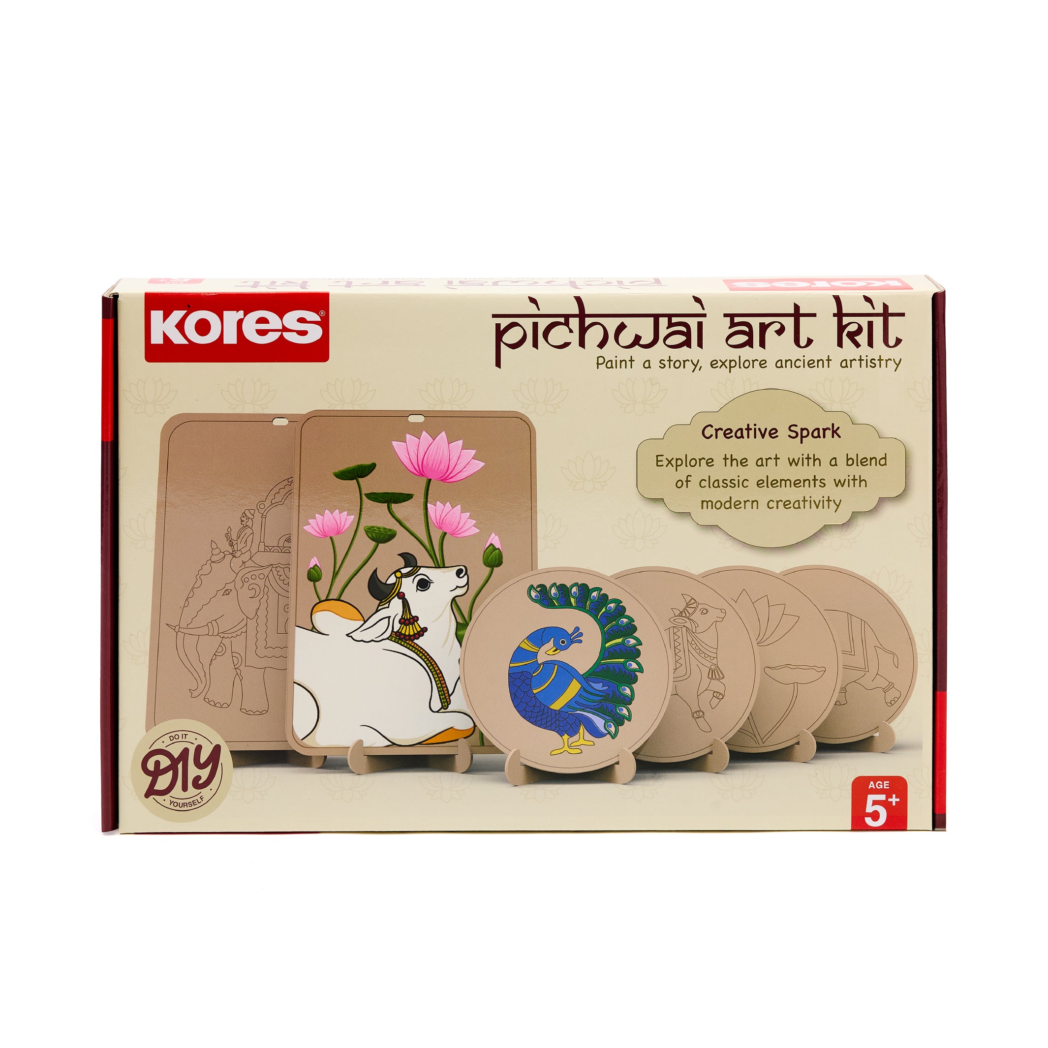 Get ready to immerse yourself in the beautiful world of Pichwai Art with this Art Kit. Unleash your creativity as you paint vibrant MDF coasters and stunning wall hangings adorned with traditional pichwai motifs. Additionally, craft unique stands to proudly display your finished pieces. This kit is not just about creative expression, its also an opportunity to delve into traditions, improve skills, and promote personal growth.