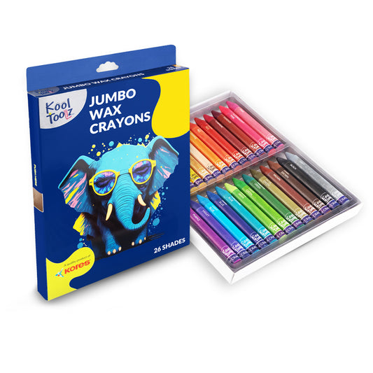 Kores Kool Toolz 26 Jumbo Shades Wax Crayons features 24 vibrant shades, plus 2 bonus colors, designed to fuel your creativity and bring your ideas to life. These jumbo crayons offer smooth, bold strokes for turning any canvas into a masterpiece.