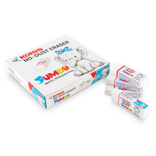 Make erasing fun and mess-free with Kores No Dust Erasers! Perfect for schools and offices, these dustless erasers keep your workspace clean while easily removing pencil marks. Each box contains 20 Jumbo-sized erasers, ensuring you have plenty to share with classmates or coworkers. Say goodbye to messy dust and hello to smooth, neat corrections with Kores!