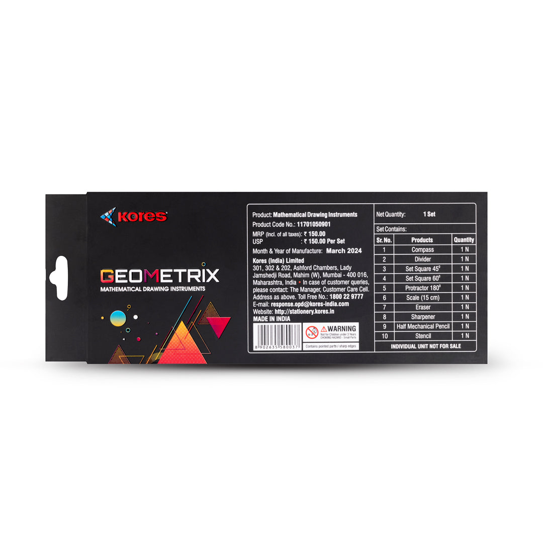 Get ready to ace your math class with the Kores Geometrix Geometry Box! This sleek, rust-free set features high-quality, compact tools designed to fit perfectly in your bag. With its smooth matte finish and the best materials in the market, it’s not just practical—it’s seriously stylish too. Measure, draw, and create with confidence, all while turning heads with your cool new geometry buddy!