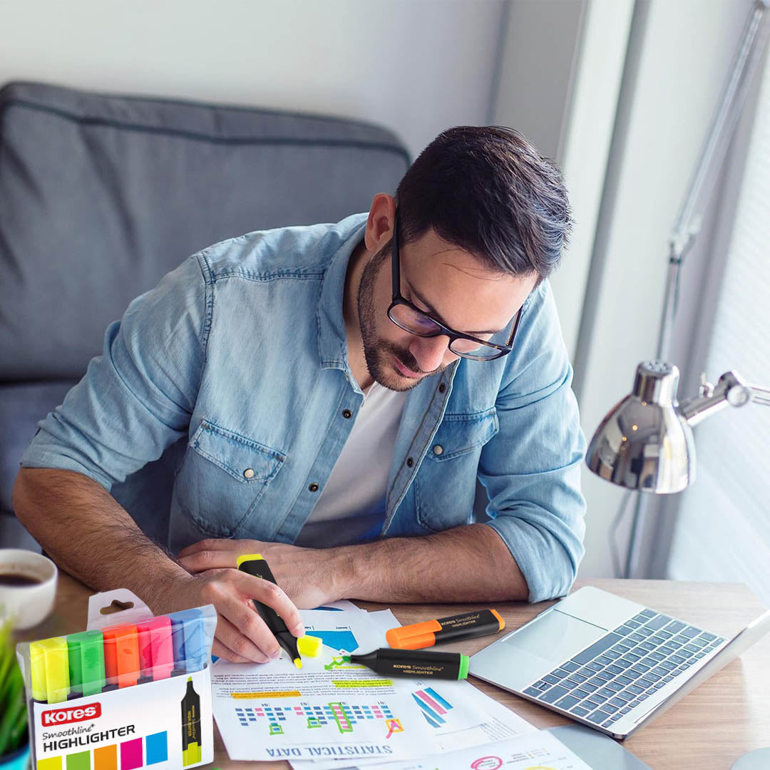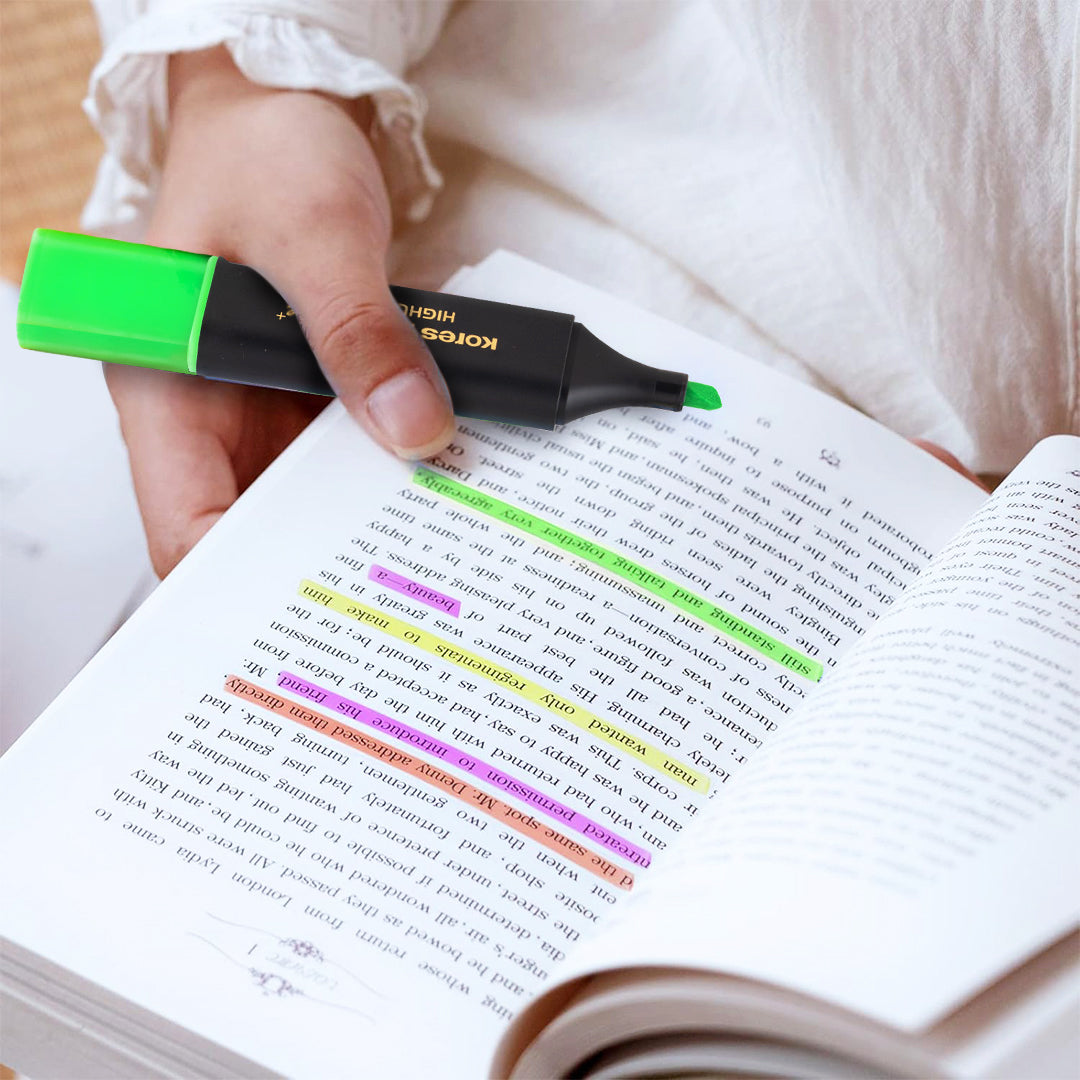 Brighten up your notes with Kores Highlighters in assorted vibrant colors! Perfect for school, office, or creative projects, these highlighters add fun and clarity to your work. Easy to use and super bold, they help important info stand out instantly. Make your writing pop and bring a splash of color to every page!