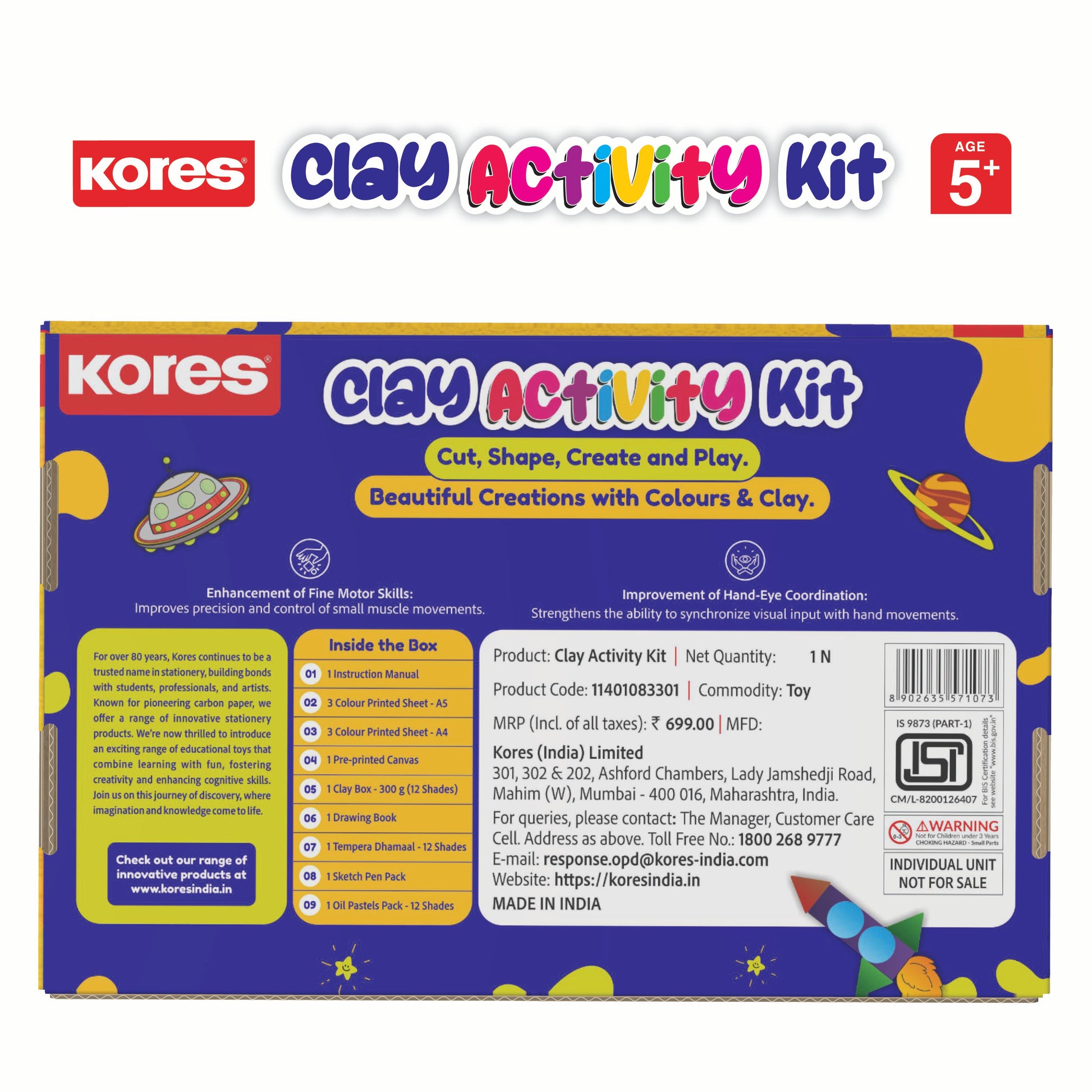 Unlock a world of imagination with the Kores Clay Activity Kit. A one-stop creative powerhouse for kids aged 5+ years! Designed to inspire, engage, and delight, this all-in-one art and craft kit is packed with endless possibilities, making it the perfect companion for every young artist.
