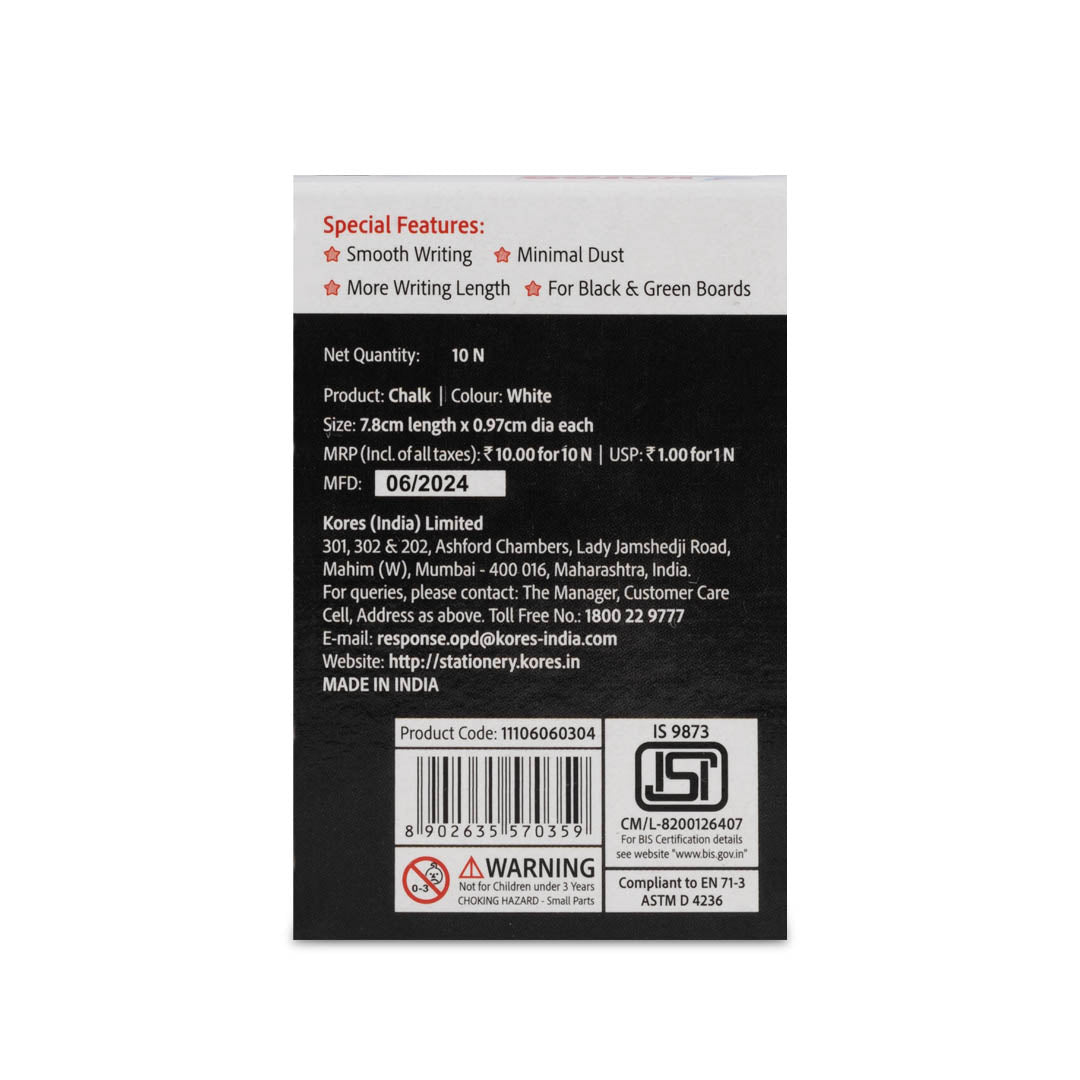 Bring fun to the classroom with Kores White Chalk - 10pcs! These dustless, non-toxic chalks are perfect for schools, keeping the air clean and safe while sparking creativity on every chalkboard. Write, draw, and erase with ease—learning has never been this bright and breezy!