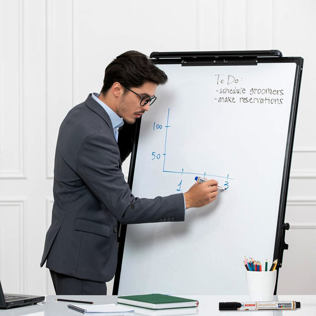 Add a splash of fun to your meetings and classes with Kores White Board Markers! This compact duo in black and blue colors promises top-quality ink that glides smoothly every time. Perfect for office brainstorming or school projects, these markers deliver bold, clear writing while fitting neatly in your hand or pocket. Brighten up your whiteboard and make every note count with Kores!
